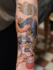Vinicius's work often features dragons, animals, flowers, and Buddhist motifs, reflecting his love for nature, Japanese gardens, and his personal philosophy of life. He is particularly skilled in working with machines and is capable of creating large-scale projects such as sleeves, back pieces, and the traditional horimono bodysuit.